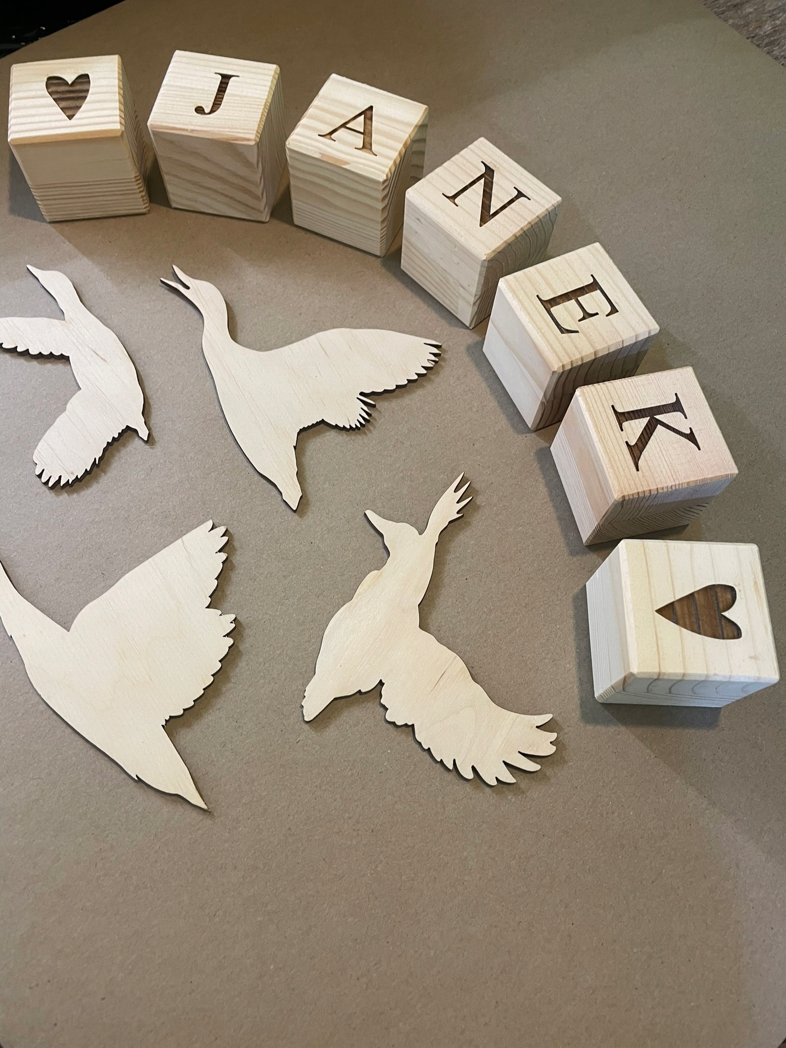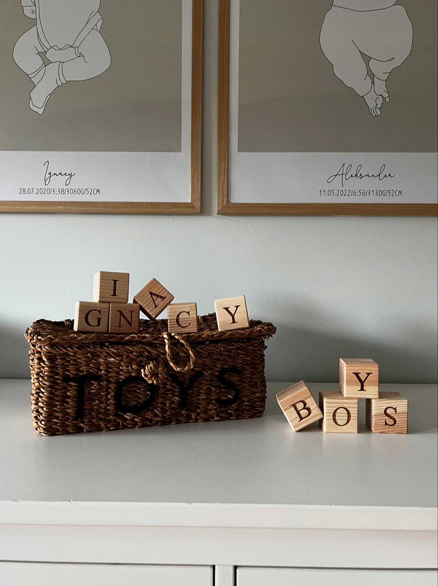 DREWNIANE KLOCKI DEKORACYJNE Z IMIENIEM DZIECKA DUŻE Z DOWOLNĄ LITERKĄ HIT