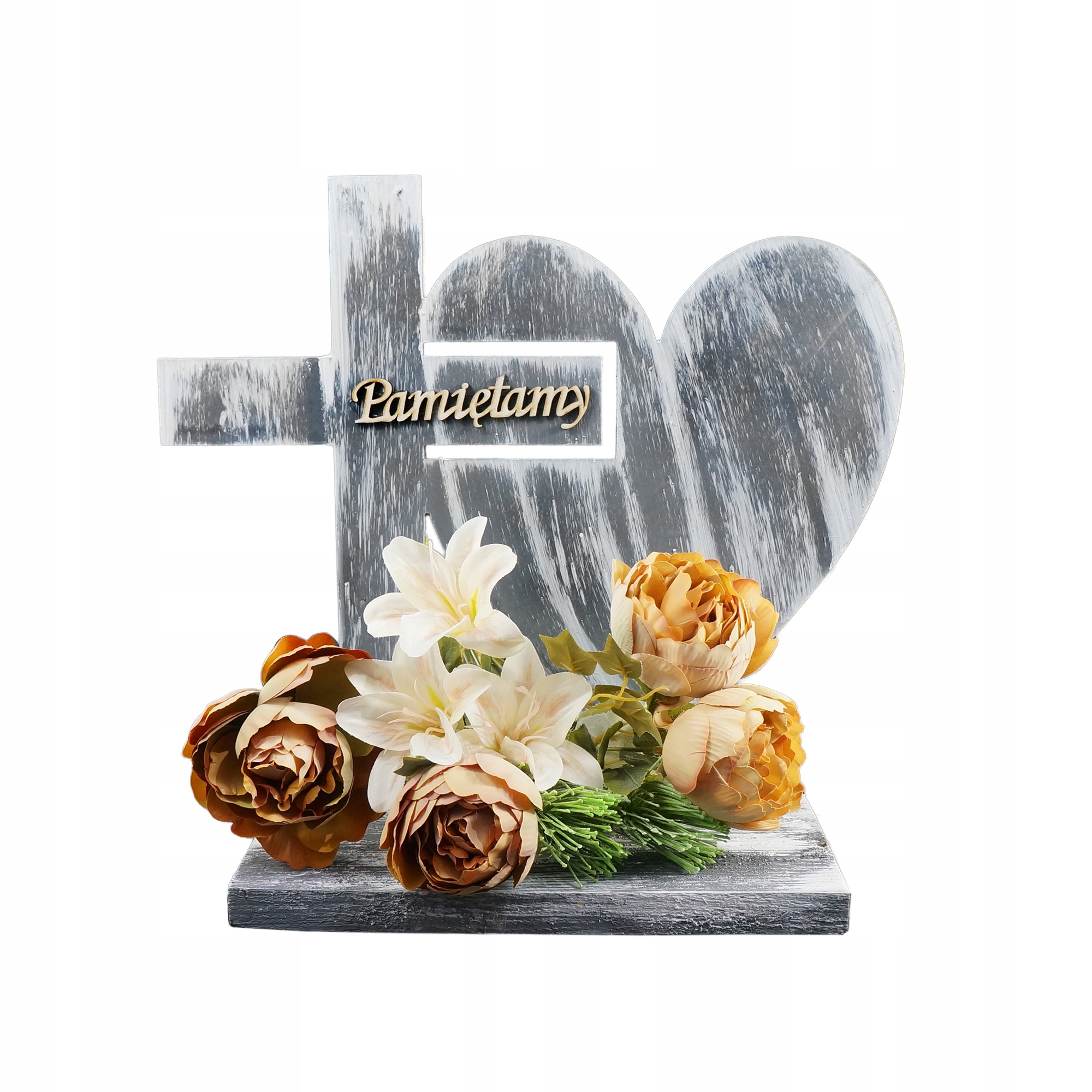 Drewniane serce nagrobne z krzyżem ozdoba nagrobna na kompozycje znicze