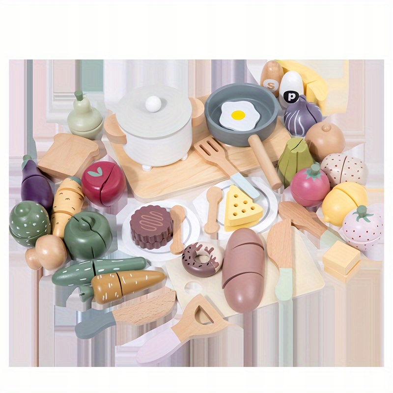 Drewniane zabawki Zestaw jedzenia do kuchni 42 sztuki Drewniane zabawki z k