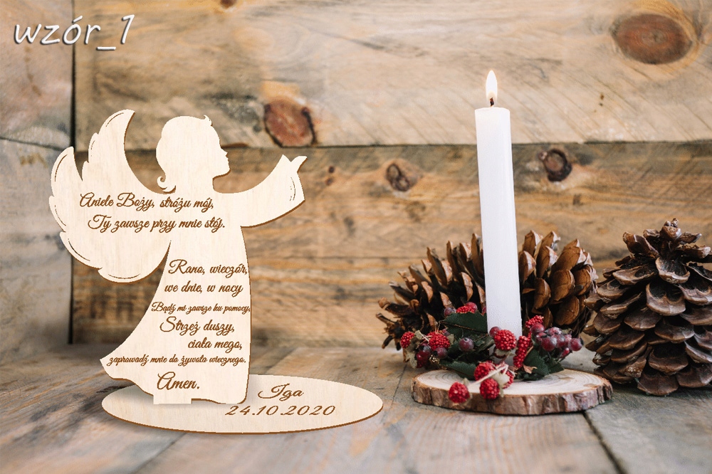 Drewniany PERSONALIZOWANY anioł z modlitwą GRAWER