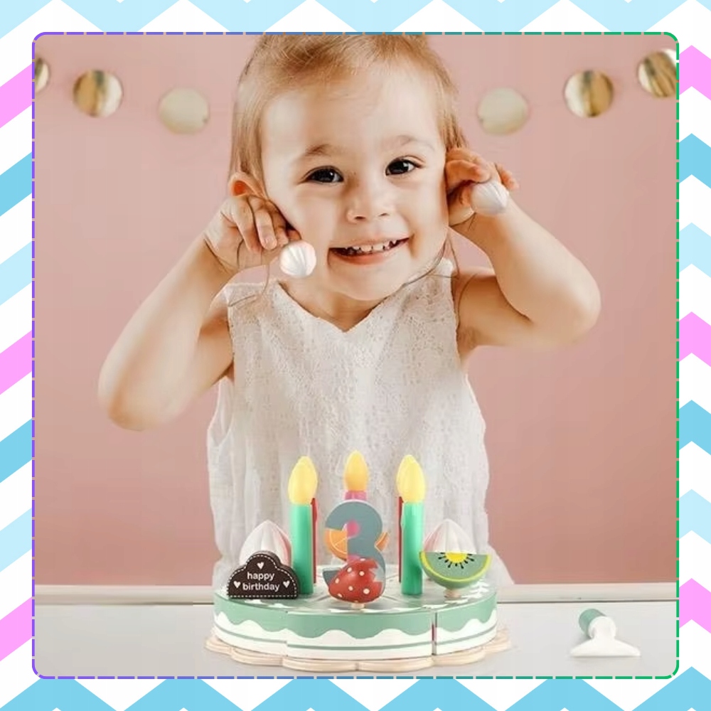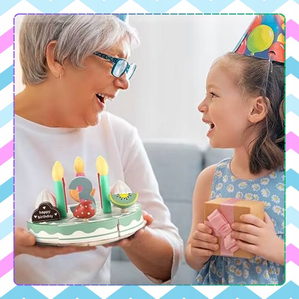 DREWNIANY TORT CIASTO DO KROJENIA DUŻY ZESTAW DLA DZIECI Z AKCESORIAM