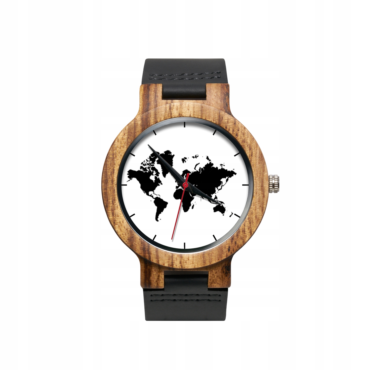 DREWNIANY ZEGAREK Z GRAFIKĄ MAPA ŚWIATA