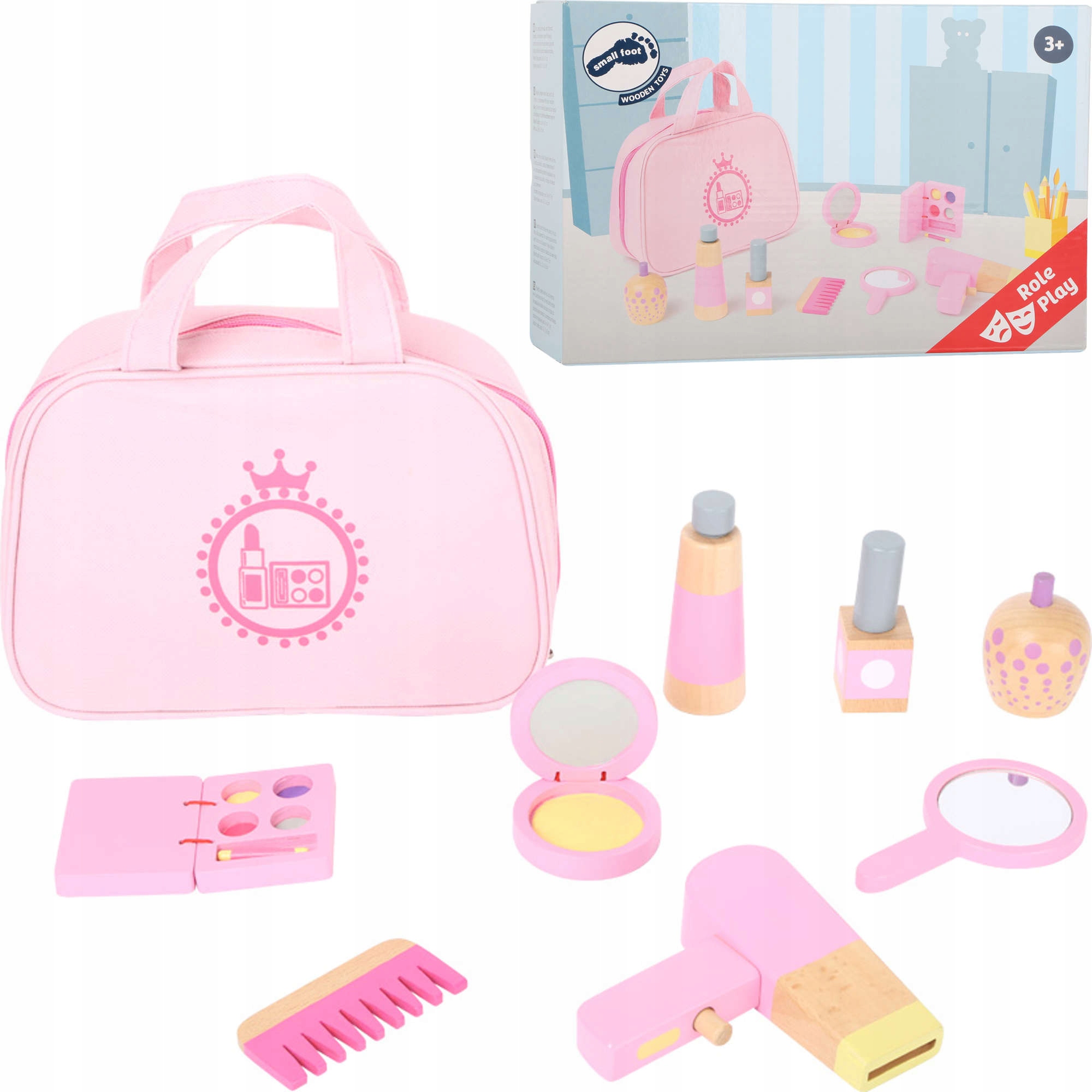 Набір складається з рожевої тканинної косметички, де можна зберігати різні аксесуари та косметику. Дерев'яна косметика дуже нагадує справжні продукти, забезпечуючи безпечне та приємне задоволення.