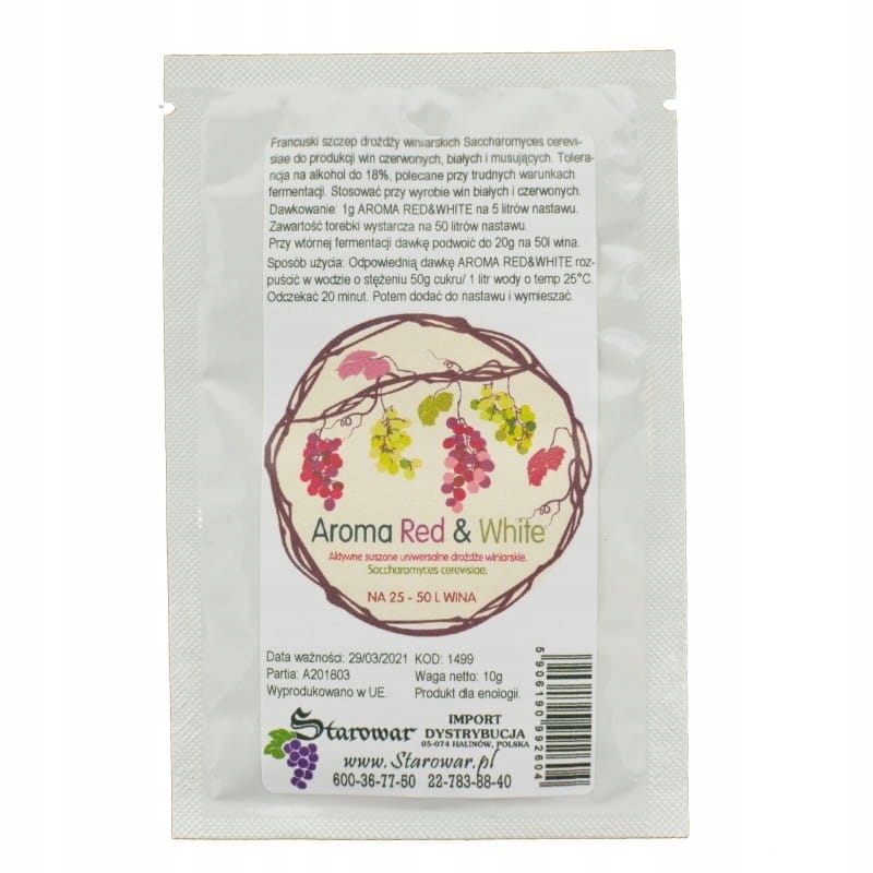 Дріжджі AROMA RED & WHITE 10г для червоного білого вина 18%