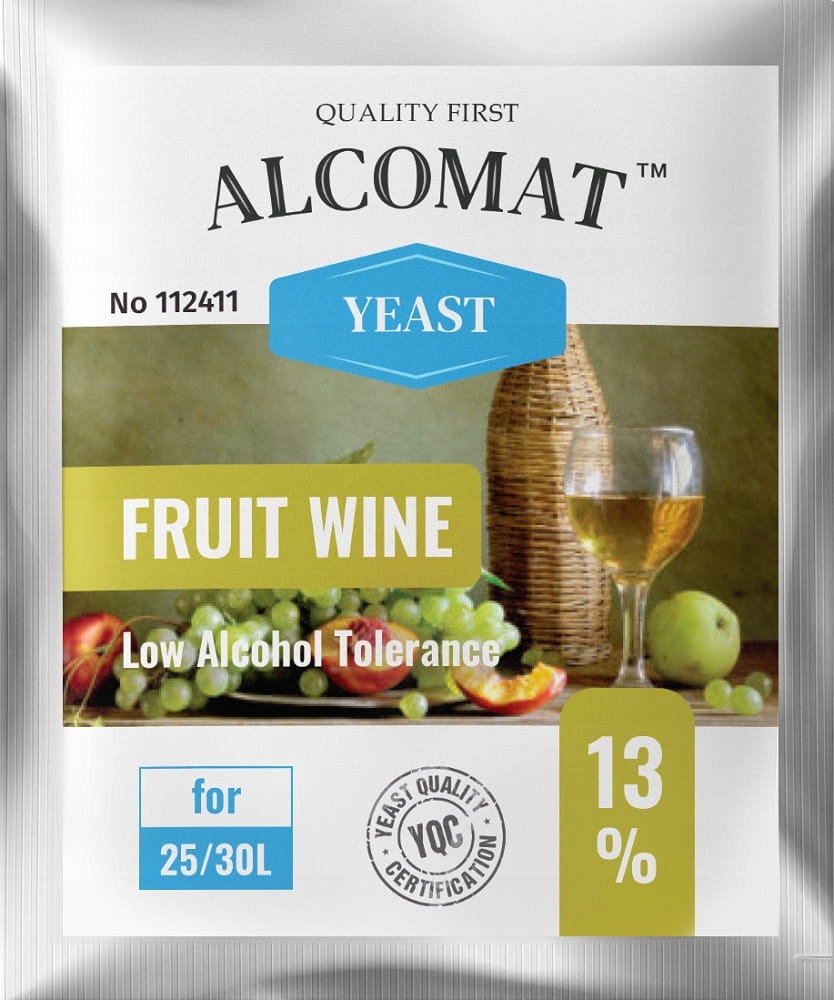 Alcomat Fruit Wine Yeast (Low Alcohol Tolerance) — благородні дріжджі, призначені для виробництва вин із низьким вмістом алкоголю. Призначені для виробництва легких фруктових вин. Через низьку стійкість до спирту ці дріжджі не використовують весь цукор, що міститься в суміші, що дозволяє виготовляти напівсухі та напівсолодкі вина. Низька стійкість дріжджів до алкоголю призводить до природної зупинки бродіння, що дозволяє зберегти солодкість у вині. Використання цих дріжджів робить характерні риси фруктів, які використовуються для виробництва, набагато інтенсивнішими в кінцевому продукті.