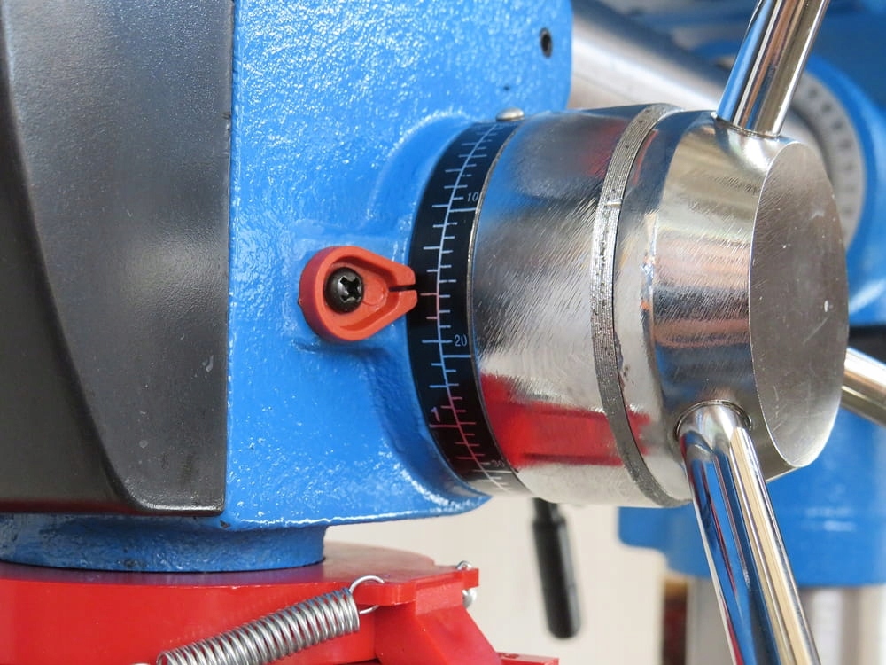 Велика радіально-свердлильна машина з широким діапазоном застосування завдяки свердлильній головці, що висувається, обертається та нахиляється.