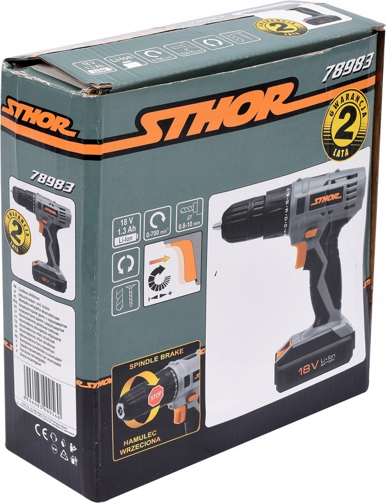 ДРИЛЬ І ШУРУПОВЕРТ 1.3Ah 18V З АКУМУЛЯТОРОМ І ЗАРЯДНИМ ПРИСТРОЄМ STHOR 78983