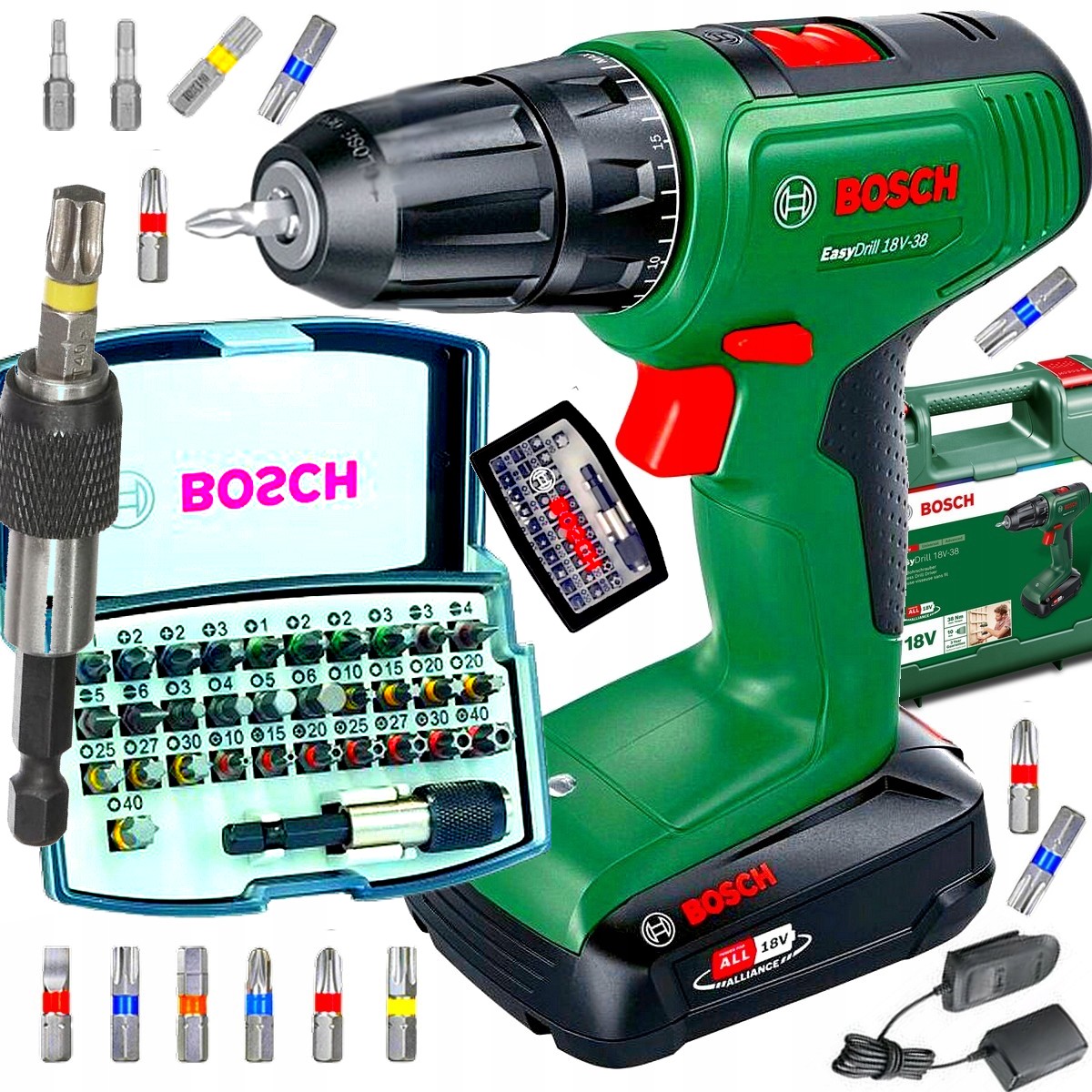 Дриль-шуруповерт 18 V 38 Nm 2Ah BOSCH + НАБІР БІТ BOSCH 32 шт. КЕЙС