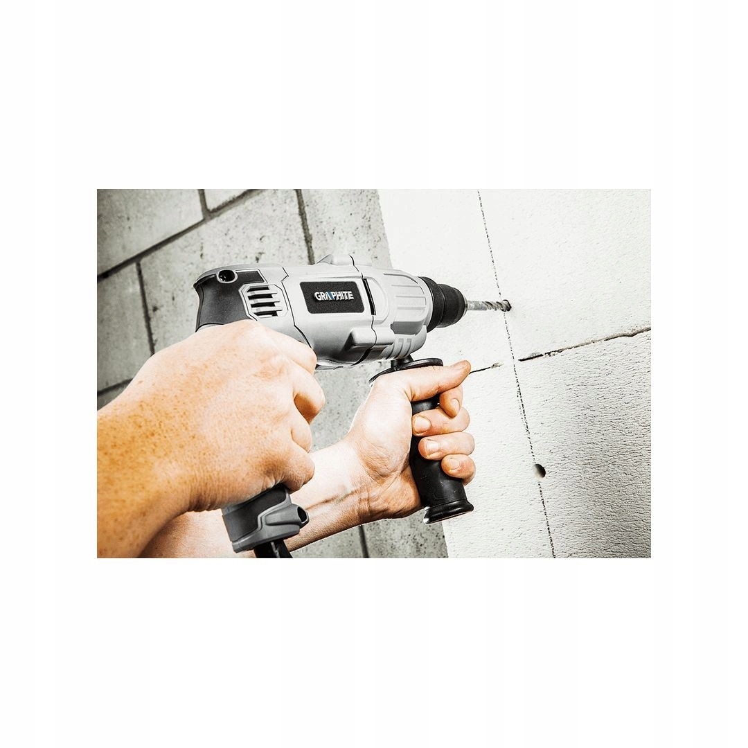 Ударна дриль SDS+ GRAPHITE (арт. 58G505) потужністю 400 Вт має функції свердління та свердління з пневматичним ударом. Пристрій характеризується виключно малою вагою і розмірами, ближче до дрилів, ніж до перфораторів. Потужність перфоратора дозволяє свердлити отвори діаметром до 12 мм в бетоні і цеглі і 10 мм в сталі. Перфоратор має можливість зміни напрямку обертання шпинделя, можливість плавного регулювання швидкості і функцію блокування перемикача для тривалої роботи. При свердлінні пристрій може досягати до 1500 обертів в хвилину, а при переключенні на ударне - до 6600 ударів в хвилину. Ударна функція активується при натисканні свердла на просвердлену поверхню. Енергія удару становить 1,5 Дж. Перфоратор має функцію «клік» для швидкого кріплення свердла. Основна рукоятка інструменту покрита протиковзким чохлом, тому він надійно лежить у руці. У комплект з перфоратором входять: додаткове свердло, свердлильний патрон, адаптер патрона, планка-обмежувач глибини свердління, поворотна додаткова рукоятка, ємність для мастила та транспортний кейс. Відповідність європейським стандартам забезпечується сертифікатом CE. Пристрій оснащено гнучким і міцним шнуром живлення з прогумованим покриттям довжиною 2 м, який також призначений для професійного та промислового застосування як у приміщенні, так і на вулиці.