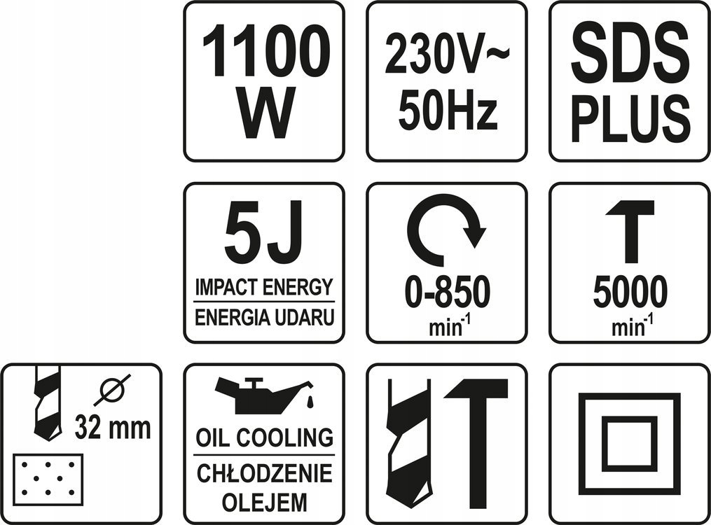 ДРИЛЬ УДАРНИЙ YATO УДАРНИЙ ДРИЛЬ ELEKTR SDS PLUS 1100W 5J + ЗУБИЛО