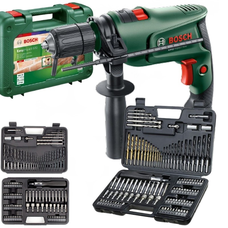 Ударний дриль Bosch EasyImpact 600 Вт + КОМПЛЕКТ + НАБІР із 109 предметів