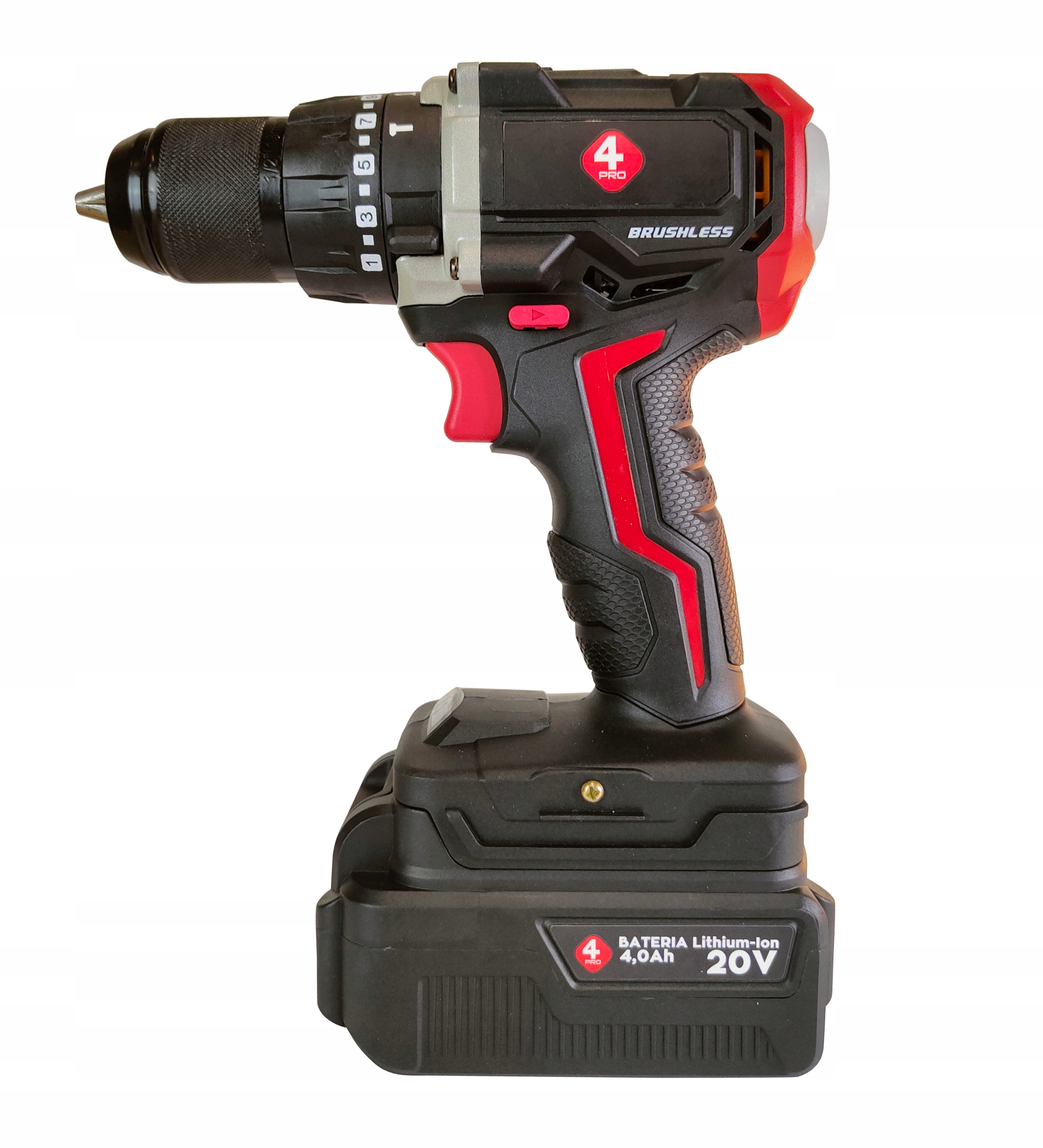 Як і всі електроінструменти 4PRO, дриль/шуруповерт живиться від літій-іонного акумулятора 20 В/4,0 А·год, який характеризується більшим часом роботи та коротким заряджанням акумулятора.
