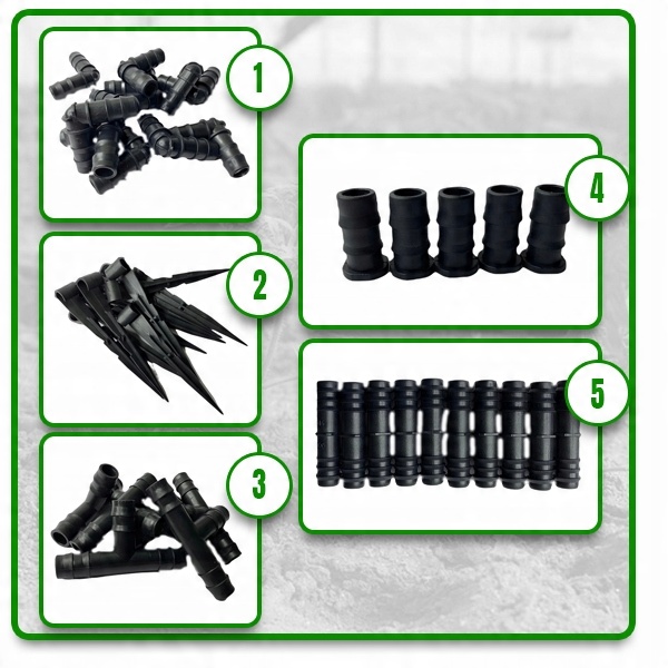 - Коліно використовується для з'єднання крапельних ліній або 16-мм ПЕ труб в системах автоматичного поливу