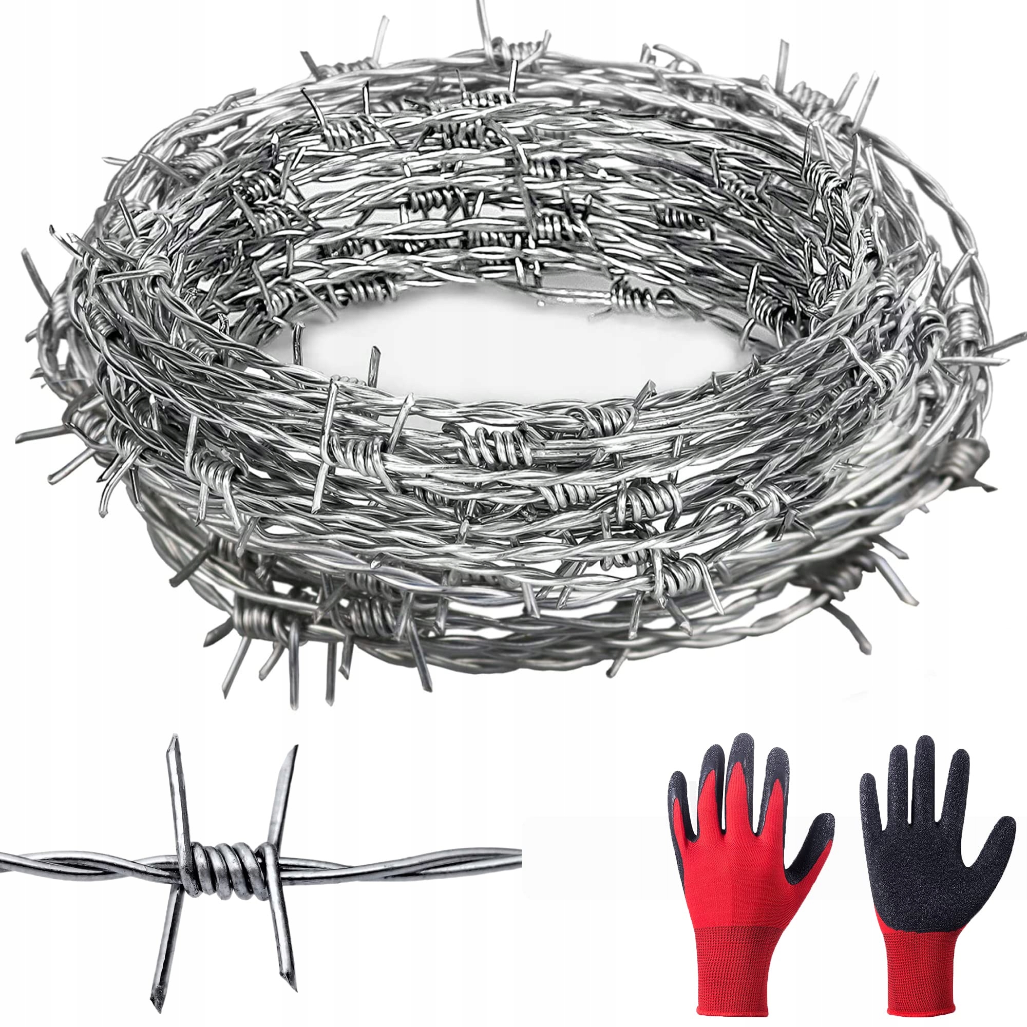 Матеріал - оцинкований колючий дріт 3 класу якості, який не іржавіє. Шипи колючого дроту дуже гострі. Щоб захистити ваші руки, ми безкоштовно надаємо вам пару міцних рукавичок. Працюючи з колючим дротом, надягайте рукавички.