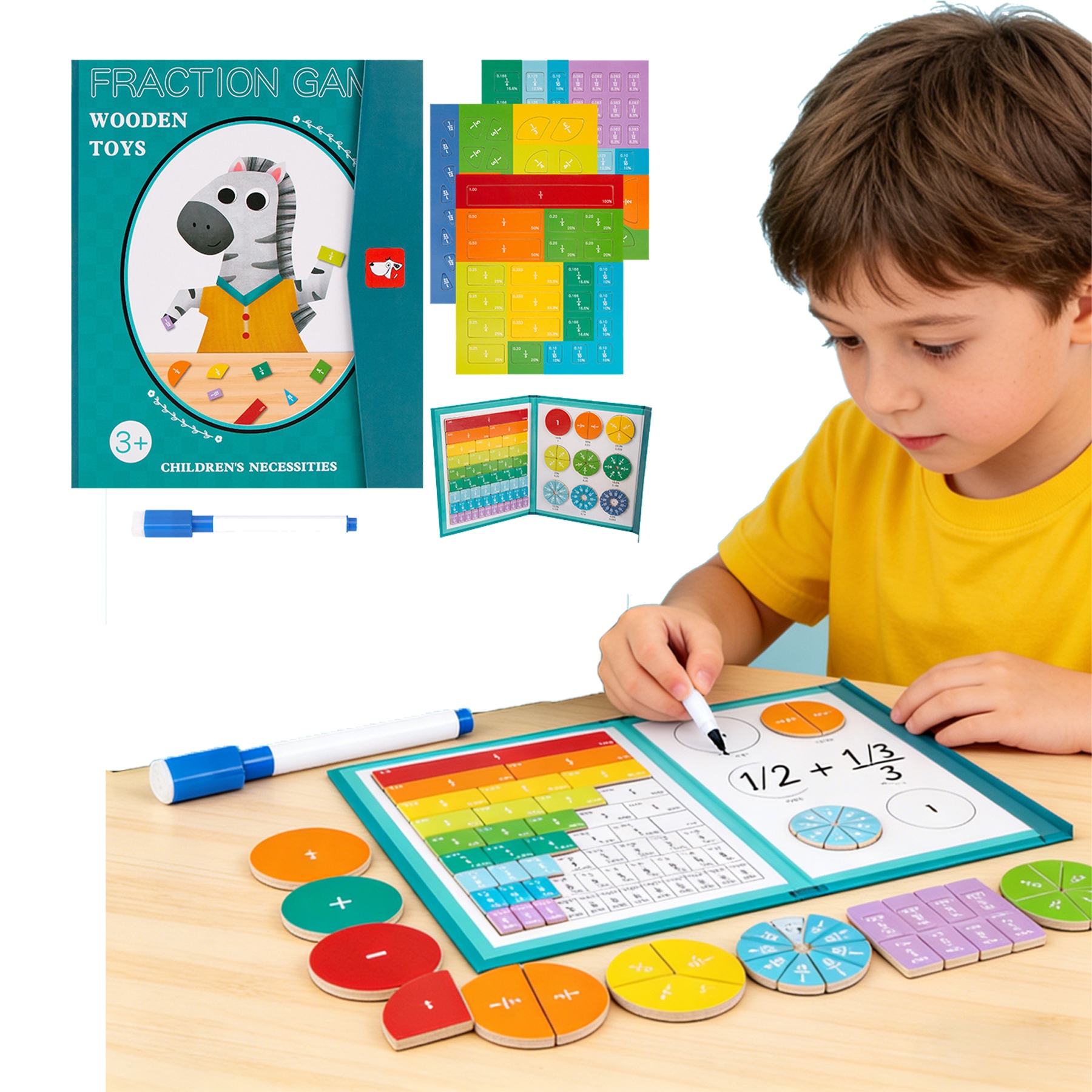 МАТЕМАТИЧНА ІГРАШКА ДРОБИ MONTESSORI - МАГНІТНА ГОЛОВОЛОМКА, маркер, що стирається