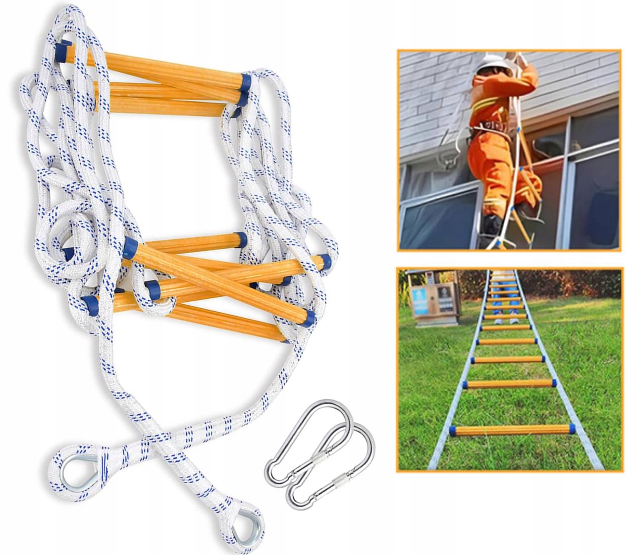 【Міцний і довговічний】-Щоб забезпечити вас міцною драбиною, у нашій аварійній драбині використовуються лише найякісніші мотузки та смоли, які можуть стати вашою опорою в разі надзвичайної ситуації. Завдяки своїй міцній конструкції він може витримати вагу понад 150 кг, що робить його незамінним вибором для будь-якого дому чи офісу, який хоче залишатися в безпеці.