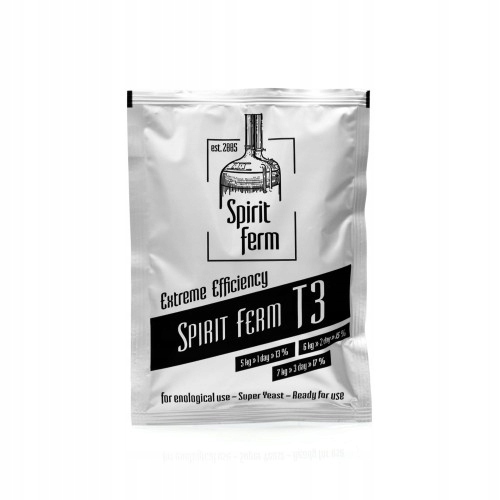 - Висока стійкість до алкоголю: Дріжджі SpiritFerm T3 мають високу стійкість до алкоголю, що означає, що вони можуть витримувати високі рівні спирту під час бродіння.