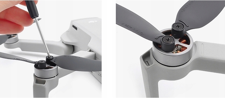 Монтажний комплект включає нові гвинти та викрутку. Вони дозволяють швидко та безпечно прикріпити пропелери до двигунів дрона.
