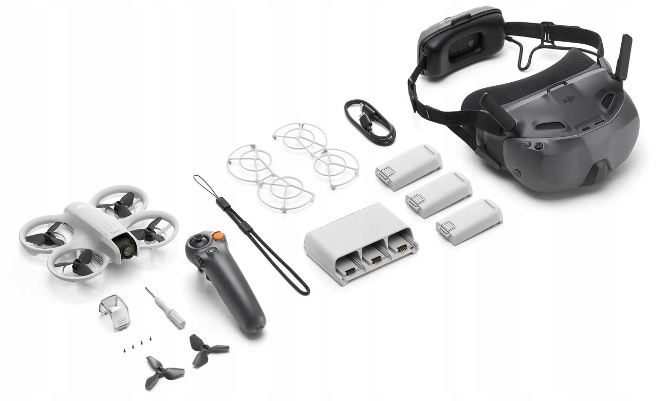 У наборі ви знайдете окуляри Dji окуляри n3 , завдяки якому ви подивитесь на звичну область з зовсім іншої точки зору. Вони оснащені екраном LCD 1080p з широким полем зору 54 ° , що дозволить вам відчути хвилювання, представляючи світ з перспективи польоту птахів. Підтримка відео передачі O4 FHD дозволяє надсилати зображення на роздільну здатність 1080p на великих відстанях. Робочий час окулярів сягає приблизно 2,7 години. Крім того, вам не доведеться вручну регулювати діоптери або лінзи кріплення - ви також можете вільно літати з окулярами.