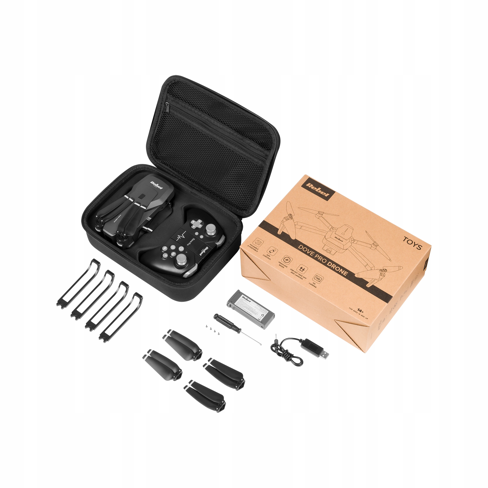Ви думаєте, з якого дрона вам краще почати? Виберіть модель DOVE PRO із серії Rebel Toys, яка завдяки 6-осьовому стабілізатору та функції автоматичного підстроювання дозволить вам потренуватися в контролі та насолодитися незабутніми розвагами.