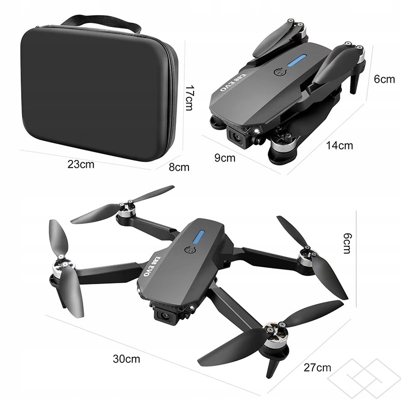 - Розміри дрона в складеному вигляді: 9 см x 14 см x 6 см