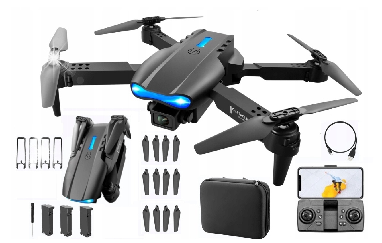 DRON E99 PRO 4K HD WIFI + CASE + 2 світлодіодні камери + 3 батареї