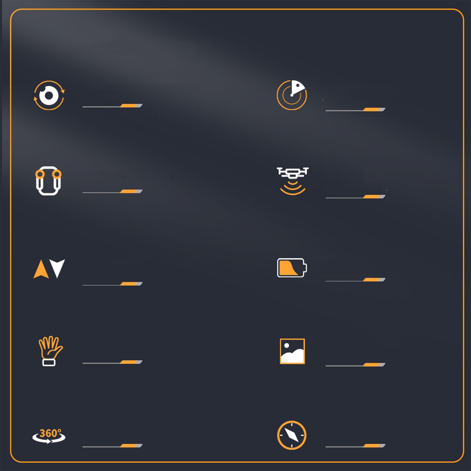 - Функції: підйом і спуск, вперед і назад, повороти вліво і вправо, чотиристороннє уникнення перешкод, налаштування висоти атмосферного тиску, подвійна камера високої чіткості 8K, розпізнавання жести