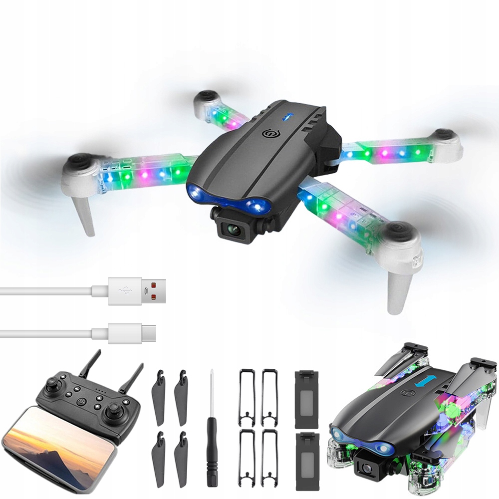 🌟 【Ефективне освітлення та візуальне свято】 Наш дрон E99 — це не просто літальна машина, це світловий художник у небі! Прозорі ручки з кольоровими світлодіодами підсвічуються вночі, створюючи приголомшливі візуальні ефекти. Вони також покращують видимість і розпізнавання дрона вночі, роблячи кожен нічний політ безпечнішим і веселішим! ✨