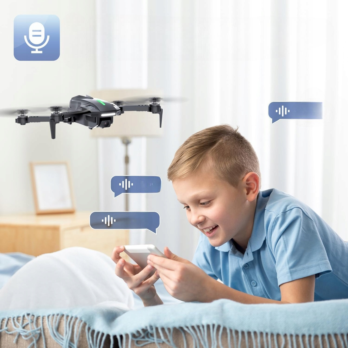 - Розумні способи керування для більшої розваги: безпілотником D70 можна керувати голосом і гравітацією, що додає новий рівень задоволення від вашого польоту. . Промовляйте такі команди, як «зліт» і «приземлення», або струсіть смартфон, щоб керувати напрямком польоту дрона. Насолоджуйтесь справді захоплюючим польотом із D70
