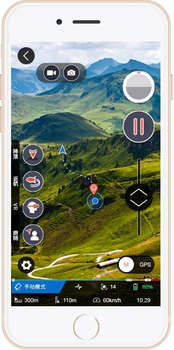 - Імітує рух телефону — перемістіть пристрій, щоб змінити положення дрона — рухи вашого смартфона відповідають рухам дрон. нахиляючи вперед, ми летимо вперед і т.д.