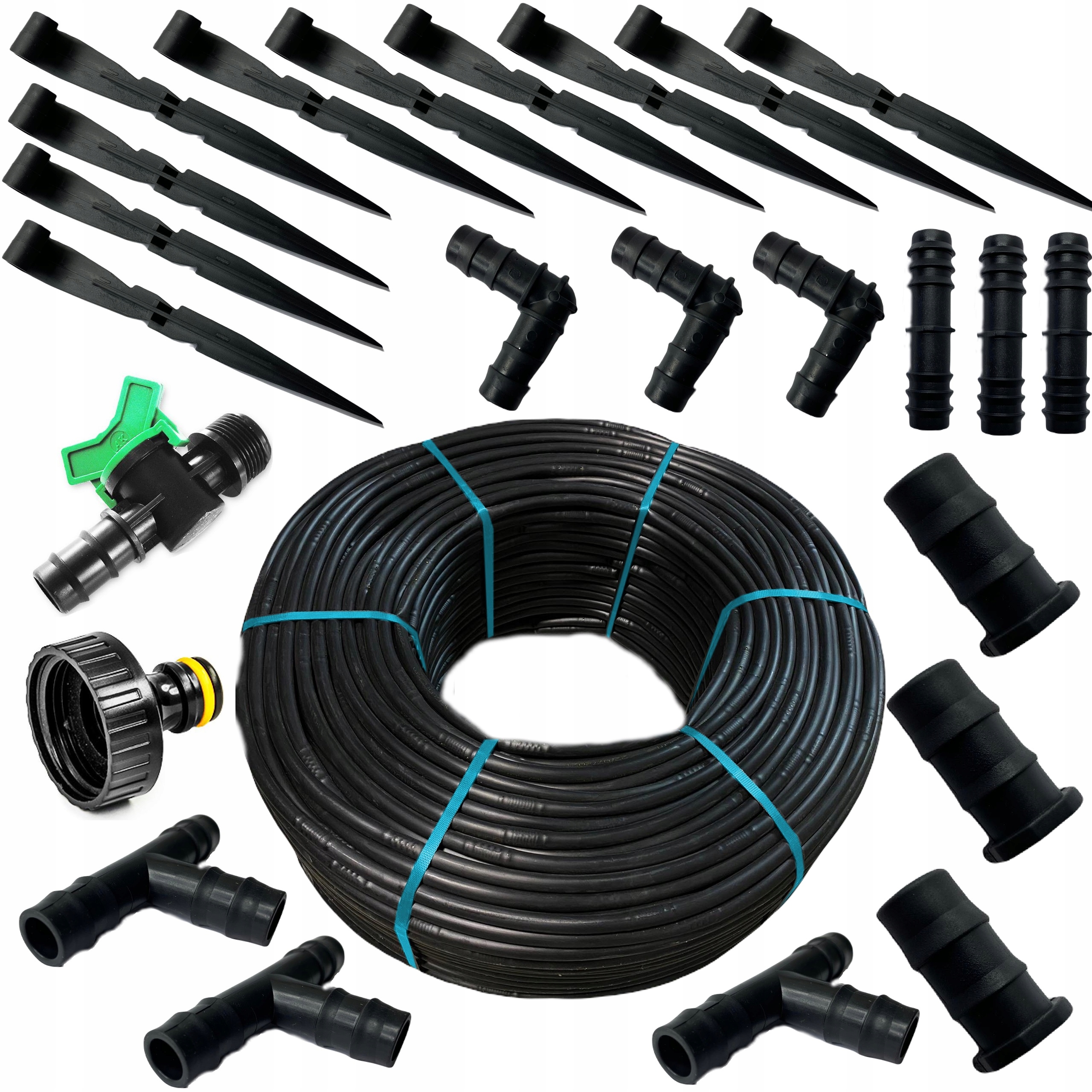 Набір включає крапельну лінію та 24 НЕОБХІДНІ ЕЛЕМЕНТИ МОНТАЖУ, які дозволять вам прокласти її як завгодно :)