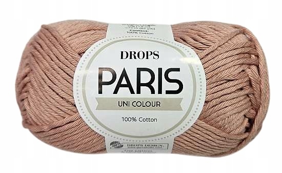 DROPS Paris - це високоякісна бавовняна пряжа, яка скручена з безлічі тонких ниток характерним способом, що нагадує струну.Paris приємний і приємний на дотик, не зернистий. Париж — це досить щільна бавовна, яка ідеально підходить для в’язання гачком різноманітних прикрас і аксесуарів, наприклад, сумочок, сіток для покупок, килимків для ванної кімнати, підставок для чашок і тарілок. Також з нього можна створювати предмети одягу, наприклад, ажурні весняні светри та кофтинки, літні дитячі шапочки тощо.