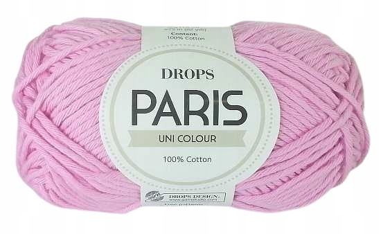 DROPS Paris - це високоякісна бавовняна пряжа, яка скручена з безлічі тонких ниток характерним способом, що нагадує струну.Paris приємний і приємний на дотик, не зернистий. Париж — це досить щільна бавовна, яка ідеально підходить для в’язання гачком різноманітних прикрас і аксесуарів, наприклад, сумочок, сіток для покупок, килимків для ванної кімнати, підставок для чашок і тарілок. Також з нього можна створювати предмети одягу, наприклад, ажурні весняні светри та кофтинки, літні дитячі шапочки тощо.