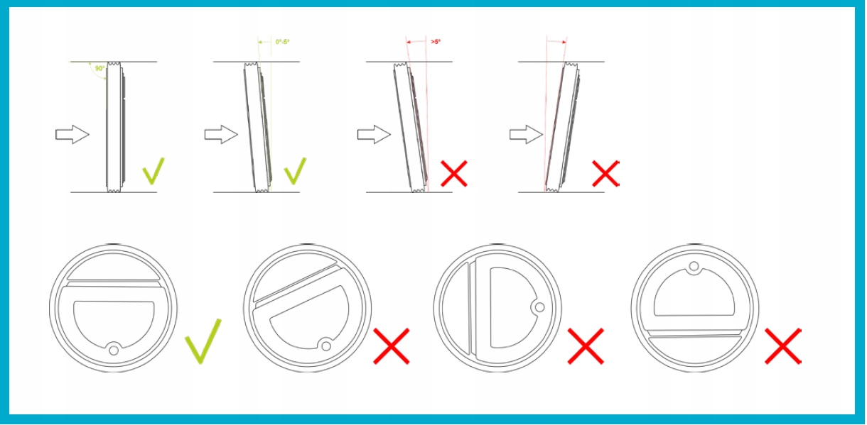 - Зверніть увагу на кут нахилу клапана, який не повинен перевищувати 5 градусів, як показано на малюнку збоку.