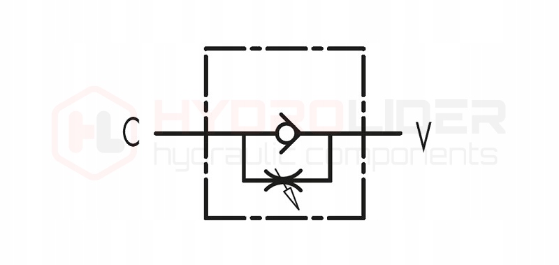 Дросельний клапан регулює (дроселює) потік в одному напрямку, тоді як потік завжди вільний в іншому напрямку. Налаштована витрата залежить від зміни тиску масла в системі. Регулювання здійснюється за допомогою ручки, налаштування можна закріпити за допомогою стопорного гвинта.