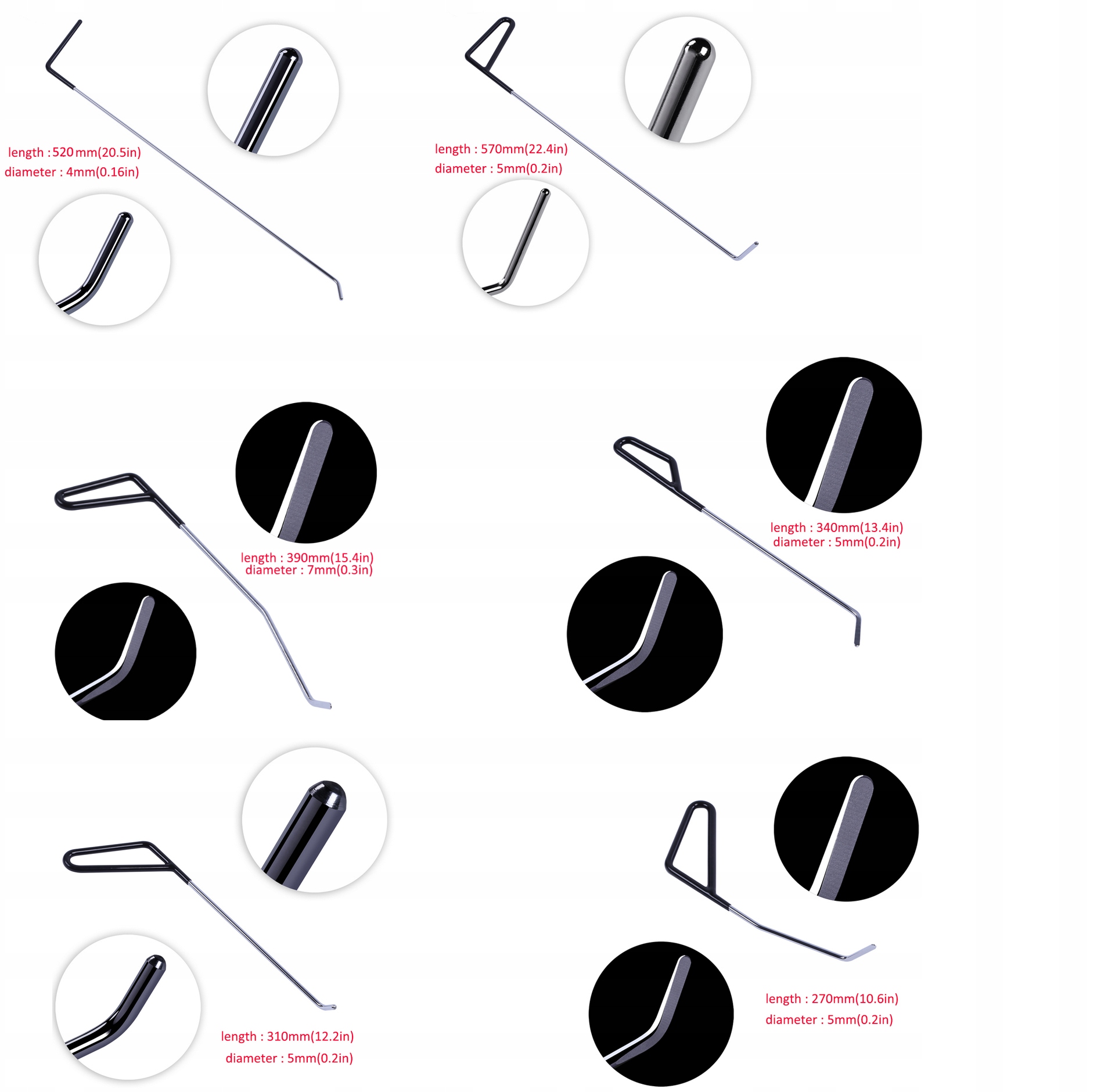 ⚡ 6 дротів/ланців PDR (суцільні, нержавіюча сталь - полірована та загартована, прогумована ручка, відповідним чином зігнута, міцна з різними кінцями)