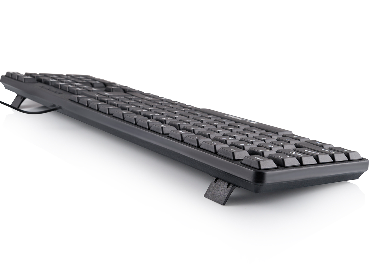 це надзвичайно зручна та ергономічна клавіатура, яка характеризується простотою та функціональністю. Стандартне розташування клавіш із повною цифровою клавіатурою забезпечує комфортне та просте використання клавіатури. Багато користувачів також оцінять використання «великої» клавіші Enter. Цю модель характеризує тихий стрибаючий механізм, що забезпечує максимальний комфорт роботи. Безсумнівною перевагою продукту є проста установка за допомогою USB-інтерфейсу - достатньо підключити клавіатуру до USB-порту комп'ютера, щоб пристрій був готовий до роботи.