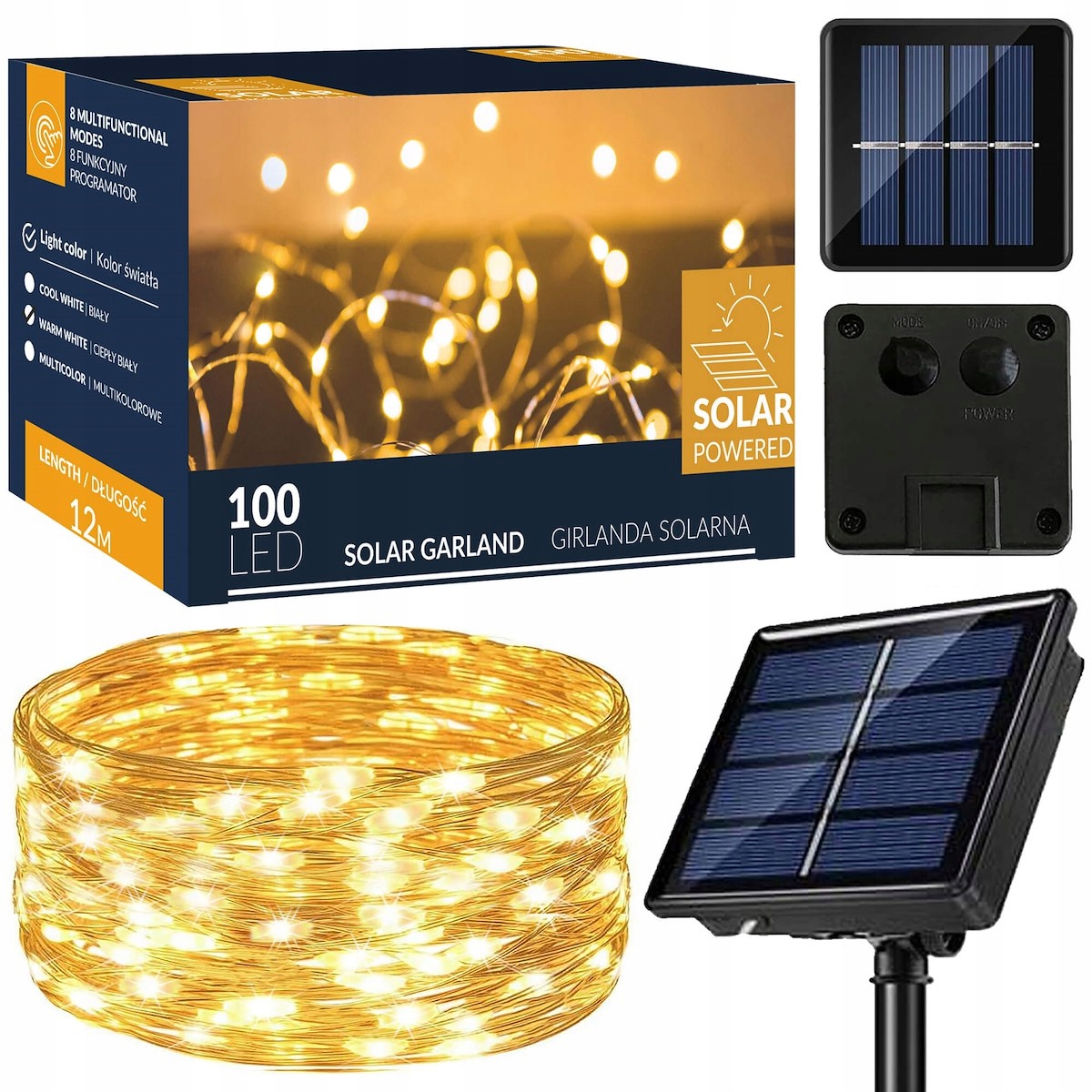 ДРОТОВІ ЛАМПИ 100 LED БІЛА СОНЯЧНА ГІРЛЯНДА 12м БАЛКОН САД