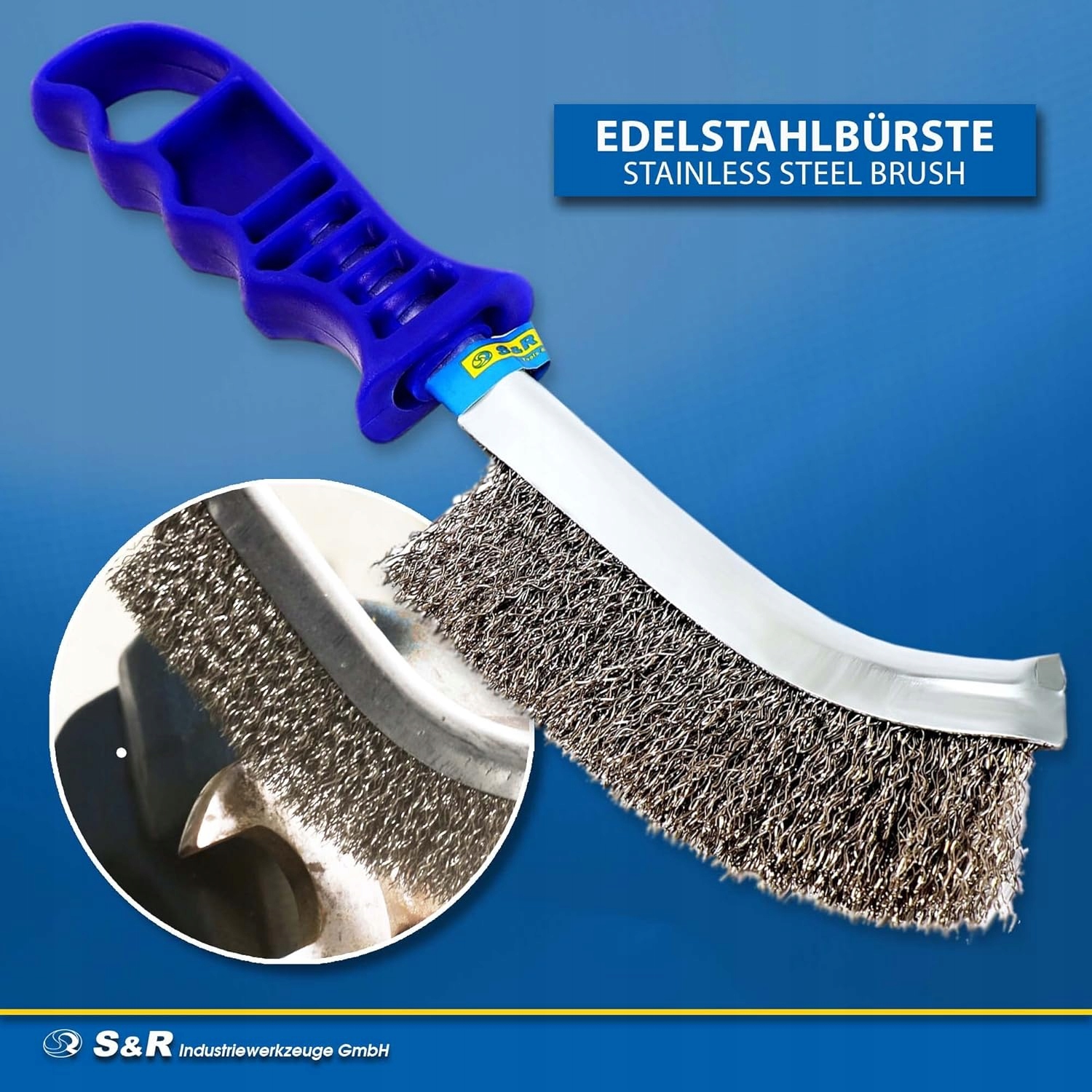 S&R Manual однорядна вузька дротяна щітка з нержавіючої сталі з пластиковою ручкою