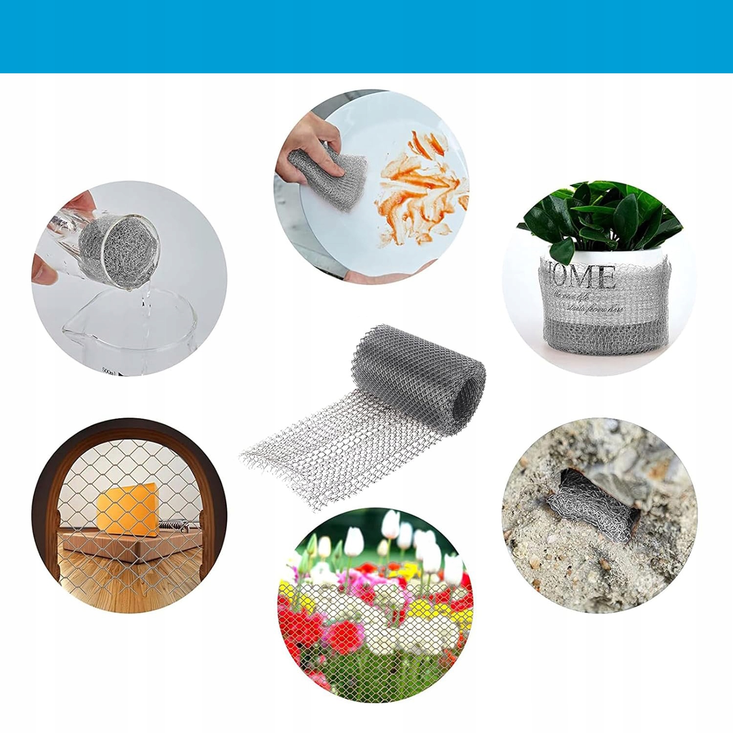 ➡ Найкраще блокувати отвори - Ця сітка з нержавіючої сталі може бути використана для блокування отворів будь -якої форми та розміру. Просто відріжте шматок і захистіть проміжок або набити отвір звичайними ножицями або ножем. Він був розроблений для заповнення всіляких дірок, щоб запобігти небажаним гостям чи повітрям, щоб потрапити в будинок чи офісну будівлю. Він нержавіючий і чудово підходить для герметизації плачучих отворів та навколо каналізаційної системи, кондиціонування, вентиляційних отворів та інших місць, куди входять небажані гості. Виготовлений з 304 нержавіючої сталі, з трикотажною конструкцією, цю сітку з нержавіючої сталі майже неможливо укусити і дуже важко видалити. Оскільки він виготовлений з кваліфікованого та сильнішого матеріалу, він дуже надійний у використанні порівняно зі сталевою шерсть, оскільки вовня легко вогонь. Сітка з нержавіючої сталі не є легкозаймистими.