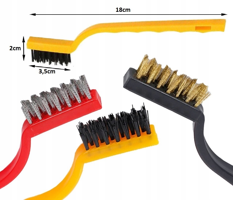 ✔ латунна щітка - використовується для видалення іржі, лаків, очищення пайки, латуні та міді. nylon Brush - Універсальний, досягне віддалених куточків і крихів, вона очистить і матове поверхонь.