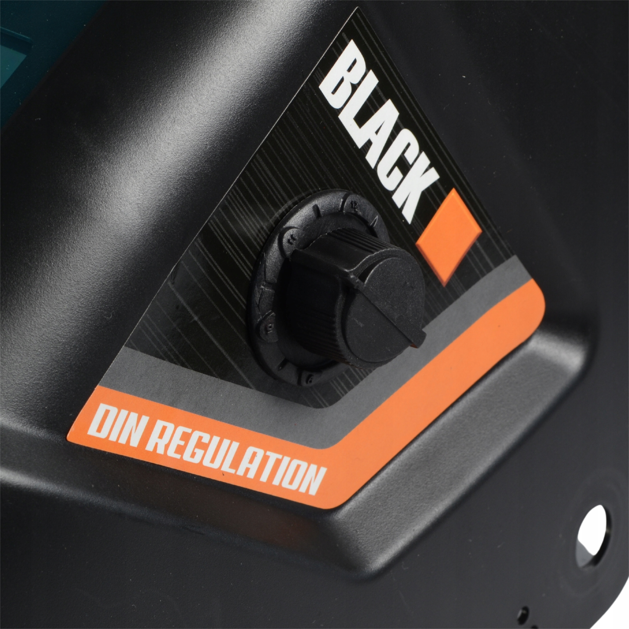 Чорна маска характеризується високою якістю та комфортом роботи. Регульований тримач голови забезпечує певну придатність та стабільність під час використання. Поле зору 92,5х42,5 мм забезпечує чудову видимість, що дозволяє точно зварювати.