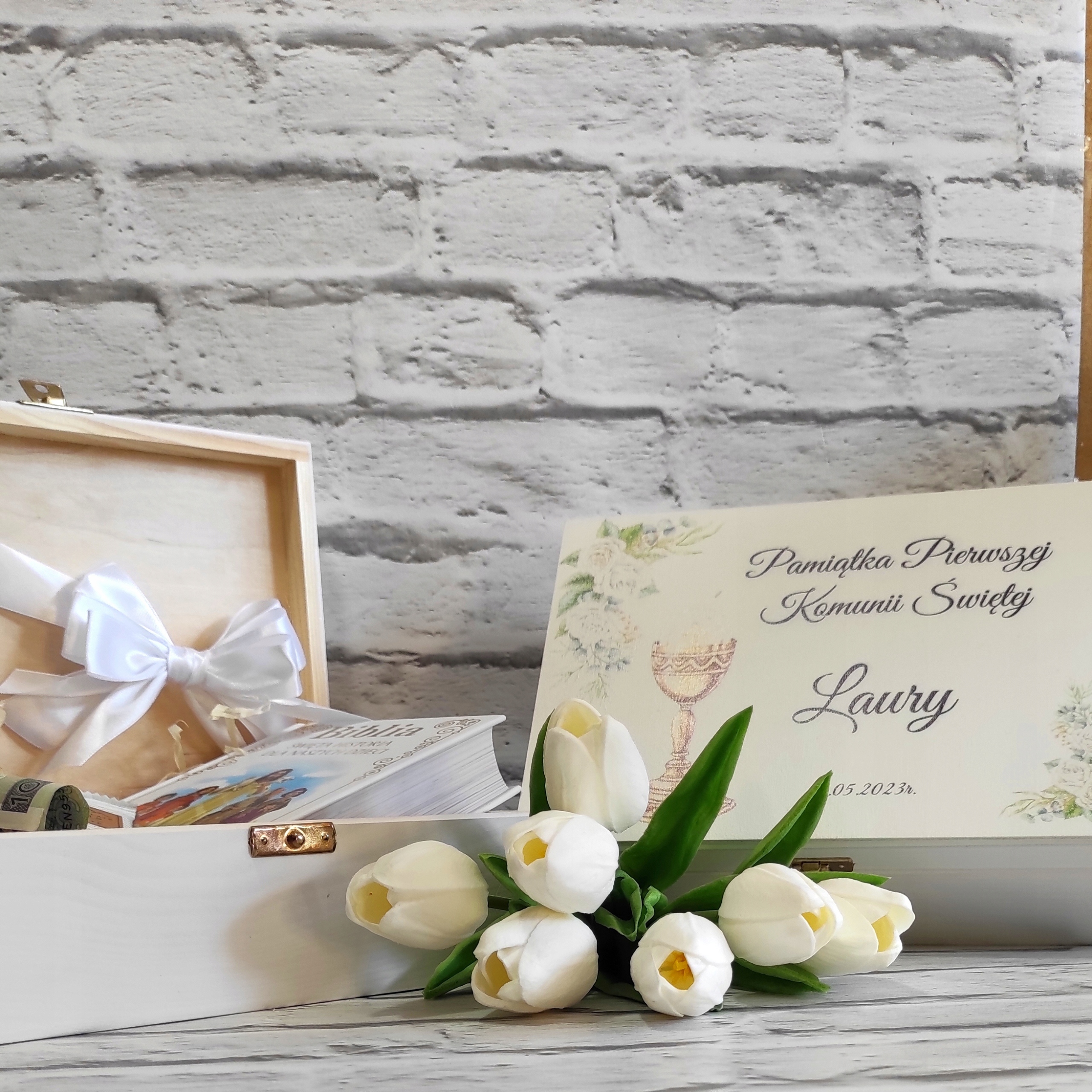 - ззовні та всередині в ній є вражаюча присвята до Першого Причастя, зроблена за допомогою перманентного УФ-друку, яка стане оригінальним і унікальним персоналізованим подарунком