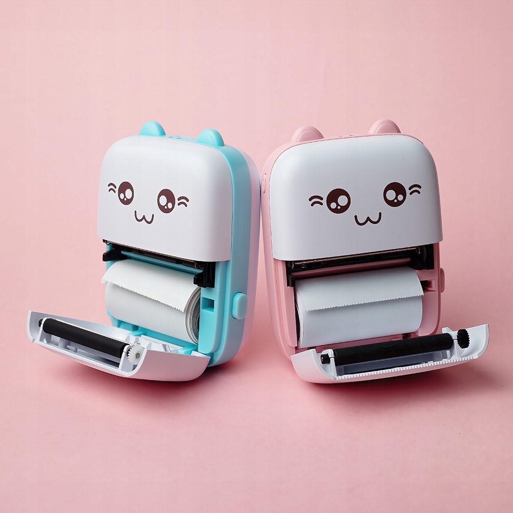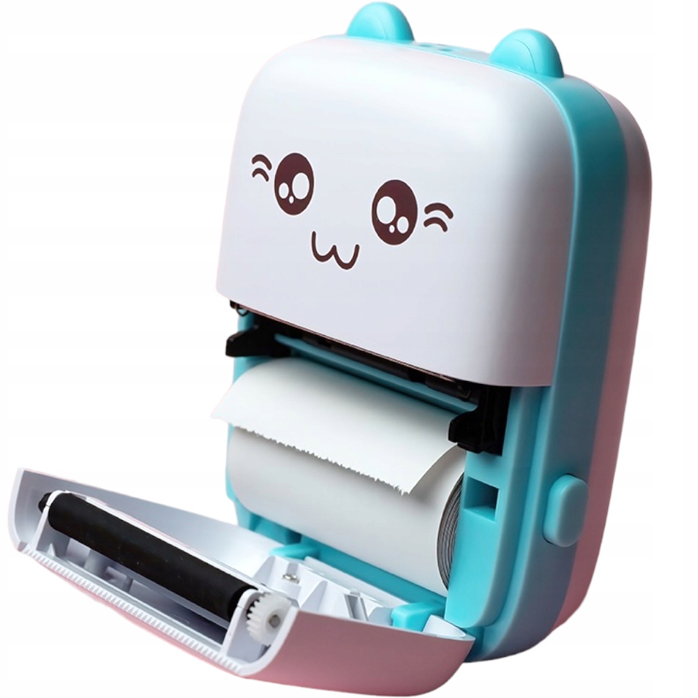 DRUKUŚ MINI CAT ТЕРМОПРИНТЕР ДЛЯ ФОТО НАЛІПОК ПРИМІТОК ПОРТАТИВНИЙ МОБІЛЬ ДЛЯ ДІТЕЙ BLUETOOTH + РОЛИКИ