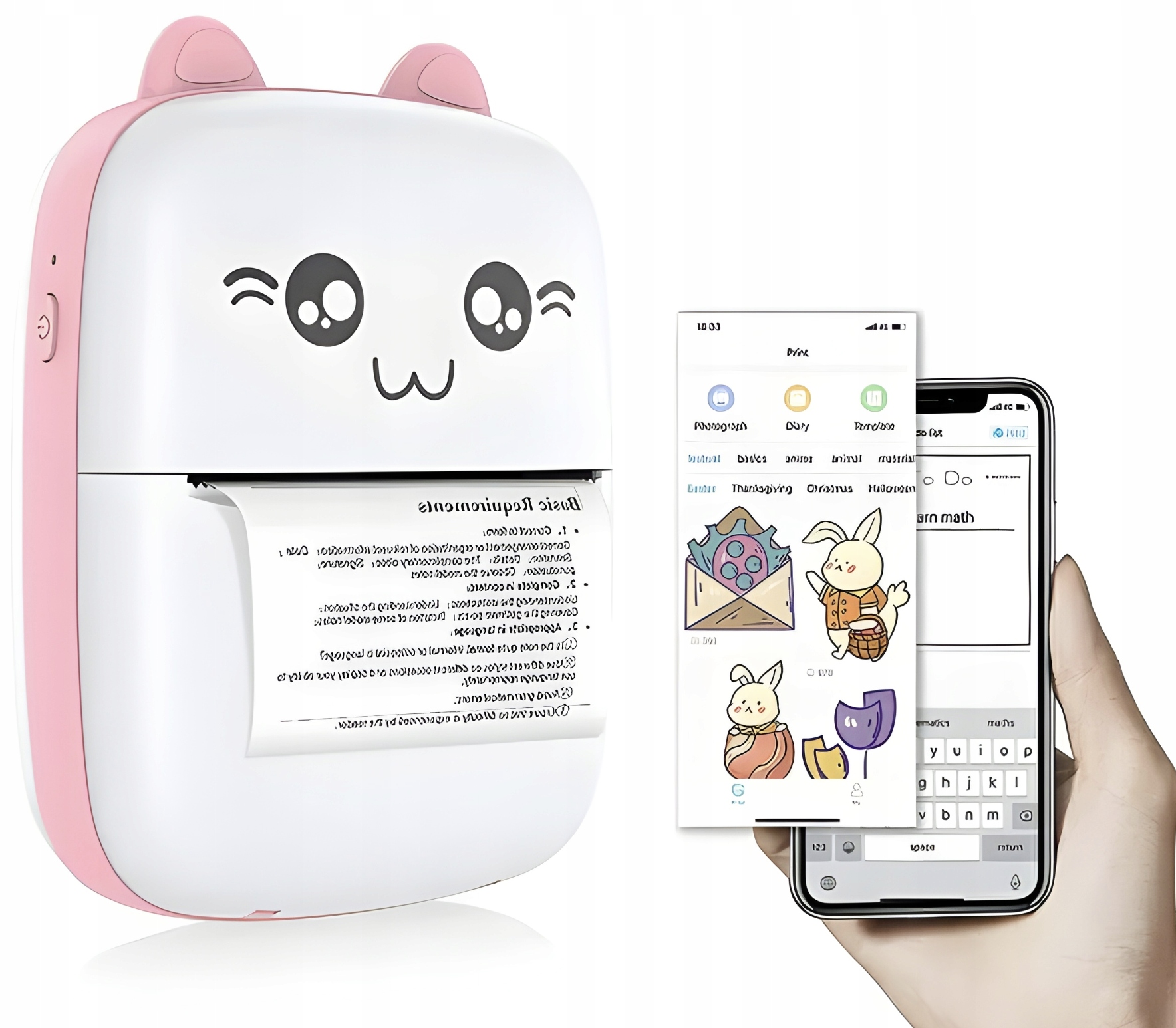DRUKUŚ МІНІ ТЕРМОПРИНТЕР ПОРТАТИВНИЙ ПРИНТЕР + БЕЗКОШТОВНО 14 МАРКЕРІВ РОЛИКІВ