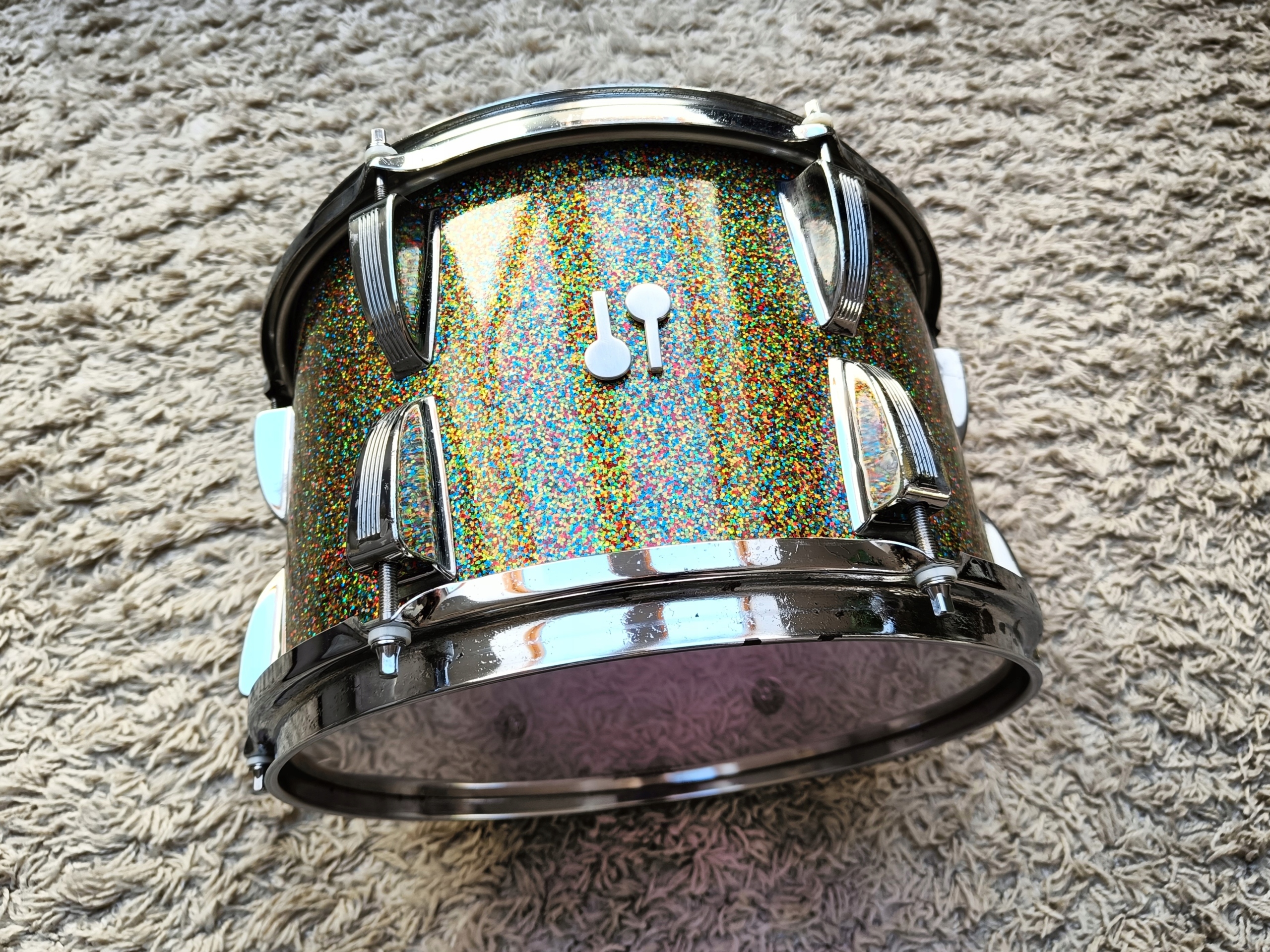 Том у хорошому стані, повністю функціональний, професійно відреставрований Artisue Drums у 2024 році, він має нову вбивчу обробку "Rainbow Sparkle" із новим литим логотипом Sonor, краї належним чином відшліфовані, а всі гвинти замінені на нові з шайби та вентиляційний отвір, оригінальний буковий корпус, вушка та ободи в дещо гіршому стані через вік, один обід має відколи, а вушка мають невеликі тріщини, в основному по краях, які мають косметичний характер і не впливають на правильну роботу обладнання.