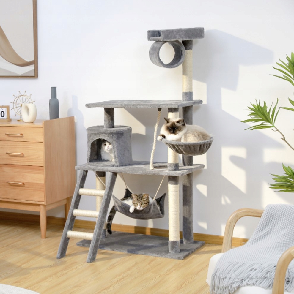 - ВЕСЕЛА ТА ДІЯЛЬНІСТЬ - дряпка для котів має різноманітні особливості, ігрові елементи. Платформа, підвіска, стовпи, ліжко або приховані місця. Це заохочує вашу кішку бути фізично активною, стрибати, лазити та досліджувати. Це також допомагає підтримувати його в хорошій формі та запобігає нудьгі. Дряпка часто стає улюбленим місцем для гри та відпочинку котів.