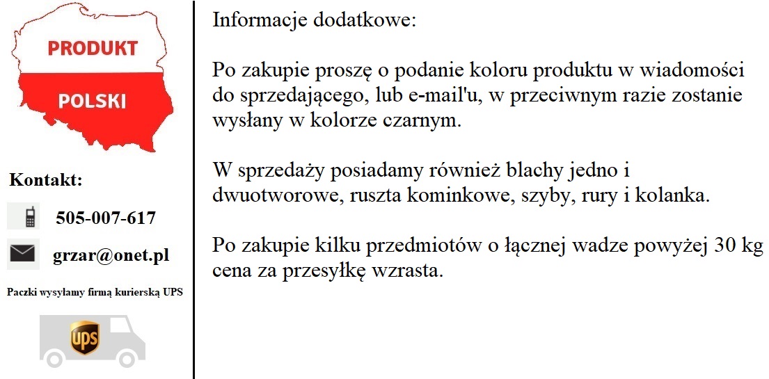 Просматривая «Drzwiczki do pieca chlebowego wędzarni żeliwne», вы можете быть уверены, что данный товар из каталога «[rubrica_name]» будет доставлен из Польши и проверен на целостность. В цене товара, указанной на сайте, учтена доставка из Польши. Внимание!!! Товары для Евросоюза, согласно законодательству стран Евросоюза, могут отличаться упаковкой или наполнением.