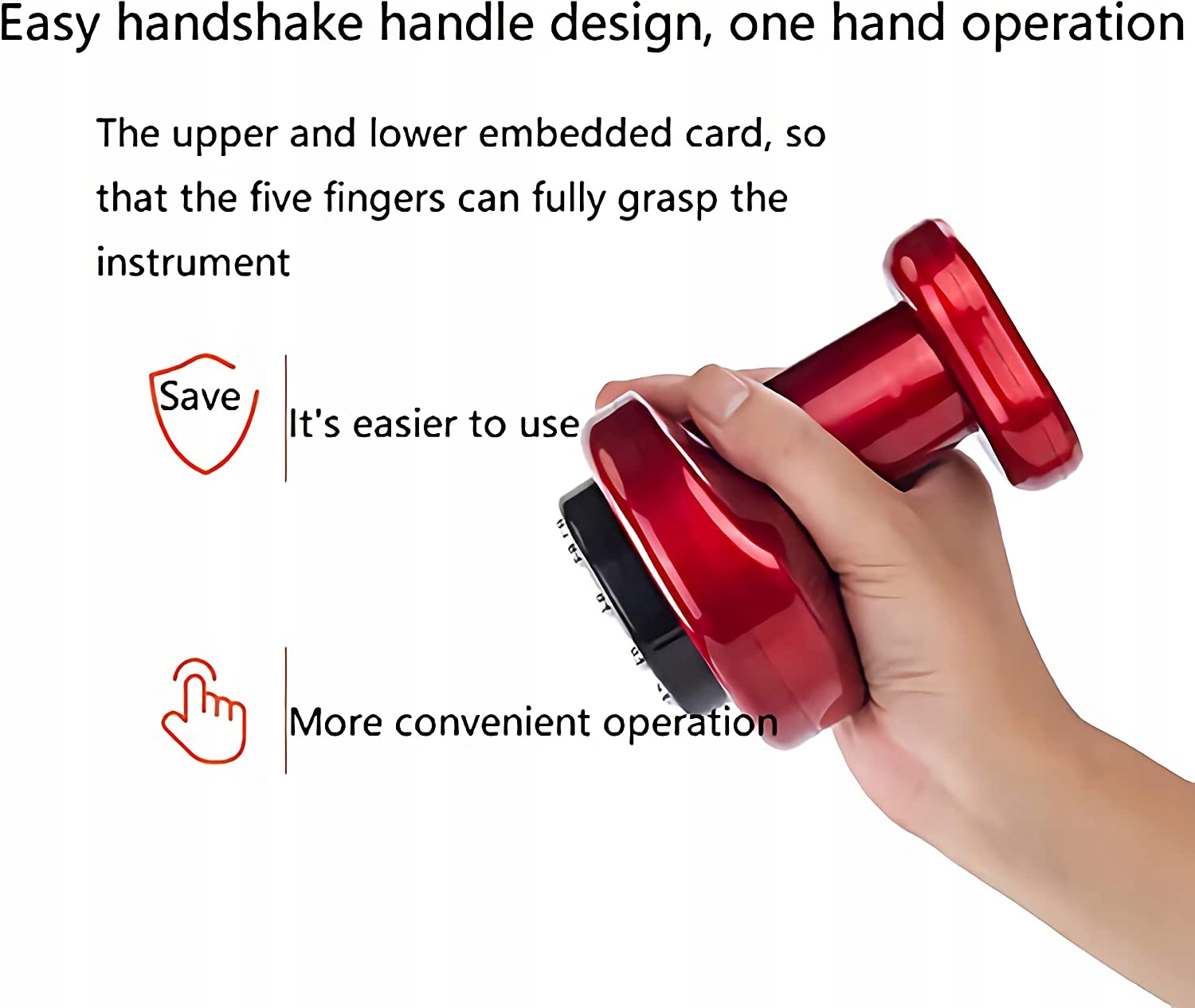 - Він може ефективно полегшити такі симптоми, як втома мозку, запаморочення, головний біль, безсоння, сонливість тощо. Просто обережно помасажуйте інструментом ту ділянку тіла, де ви відчуваєте напругу, спайки, шрами чи інші типи закупорки, щоб забезпечити циркуляцію крові в цій області. В іншому місці балона, який створює зворотний тиск шляхом всмоктування, наш інструмент може усунути застій і сприяти потоку зверху вниз. Виріб має ергономічний дизайн, довга ручка, що не ковзає, дозволяє зручно тримати портативний масажер.