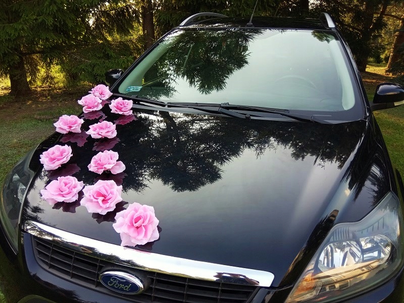 Квіти можна розмістити на капоті автомобіля як завгодно, створюючи різні прикраси.